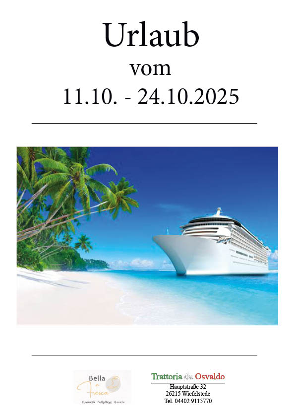 Trattoria da Osvaldo  |  speisekarte |  galerie | impressum & datenschutzerklärungcatering | aktuelles | ferienhaus friederikensiel
